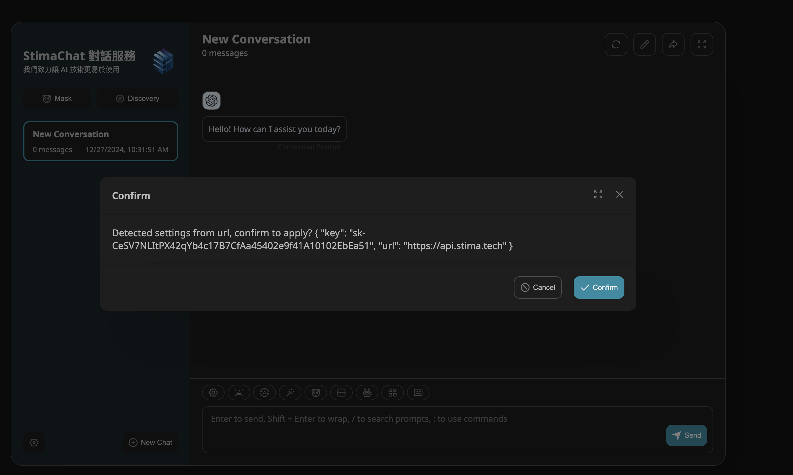 After entering, the system will automatically apply the API Key and endpoint.